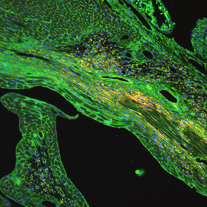 To create this metabolic change in mice, Braun and Yuan’s team turned to genetics. They found that a gene called Cpt1b, which is associated with fatty acid oxidation, is increasingly active as cardiomyocytes mature and switch from glycolysis to fatty acid oxidation after birth. Following damage to mouse heart muscle, like that which occurs during a heart attack, the researchers deleted the Cpt1b gene from the cardiomyocytes, triggering a shift from fatty acid oxidation back to glycolysis. As a result, the mice showed signs of cardiac tissue regeneration and significant restoration of heart function, similar to what seen before the injury.