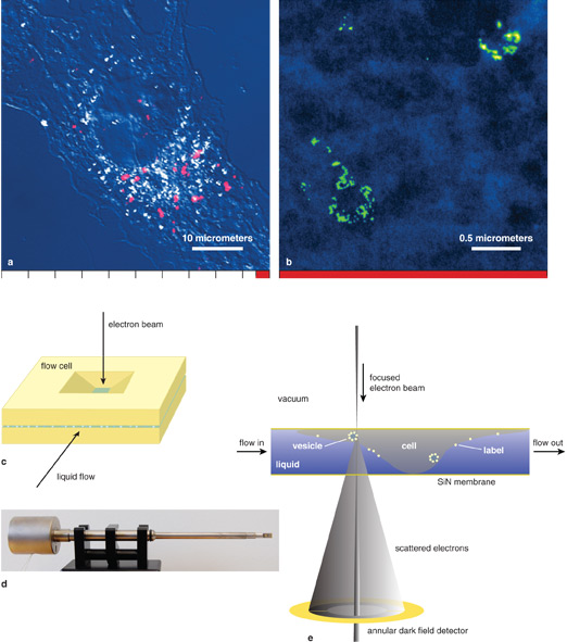 Biophysicist Niels de Jonge longs to see what interests him, no matter how small. That includes individual proteins or receptors inside mammalian cells. After all, who knows what surprises a good look at the real thing will yield? This drive, and an affection for tough problems, led the Oak Ridge National Laboratory and Vanderbilt University researcher to find a means to image whole cells in liquid with a scanning transmission electron microscope. The technique improves the view inside a cell by a factor of more than 10 compared with ultrahigh-resolution optical imaging with quick processing times. To do this, de Jonge needed to overcome a sizable obstacle: Scanning transmission electron microscopy requires a high vacuum, a hostile environment for samples in liquid, including, of course, whole cells. Associate Editor Catherine Clabby interviewed de Jonge about the innovation.