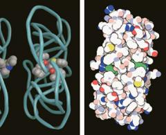 Figure 1. Clusters are weakly bonded assemblages of atoms or molecules that cannot readily be characterized as solid, liquid or gas. Because of the facile control of composition and extent of clustering, these isolated nanoscale aggregates are particularly amenable to the study of solvation effects in reaction dynamics. In particular, when rapidly ionized by intense laser light, clusters readily undergo a process called Coulomb explosion?a rapid and forceful repulsion caused by the close proximity of like charges. The authors have used time-of-flight mass spectrometry combined with femtosecond (10?15 second) laser pulses to Coulomb explode, and therefore arrest the development of, intermediate products during reactions. Shown here is a comparison of a large and a small cluster subject to laser ionization that strips four electrons from each, resulting in a charge of +4. In this illustration, the smaller cluster is unable to sustain the ionization and Coulomb explodes, whereas the larger one retains sufficient cohesive force to remain intact.