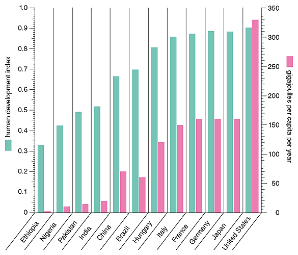 In a rational world animated by rewarding long-term policies, not only the United States and Canada but also the European Union should be boasting about gradual reductions in per capita energy use. In contrast, modernizing countries of Asia, Latin America and, most of all, Africa lag so far behind that even if they were to rely on the most advanced conversions they would still need to at least quadruple (in India’s case, starting from about 20 GJ per capita in 2010) their per capita supply of primary energy or increase their use by more than an order of magnitude—Ethiopia now consumes modern energies at a rate of less than 2 GJ per capita—before getting to the threshold of a decent living standard for most of their people and before reducing their huge internal economic disparities.