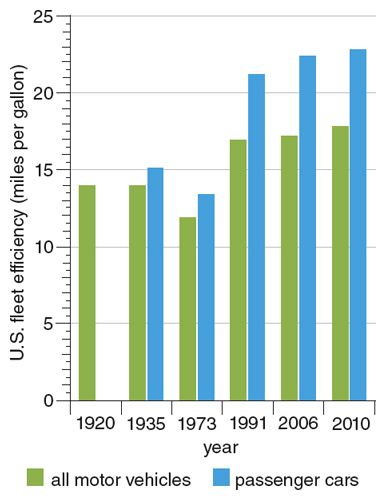 After 1985 the United States froze any further improvements in its corporate automobile fuel efficiency (CAFE), encouraged a massive diffusion of exceptionally inefficient SUVs and, at the same time, failed to follow the rest of modernizing world in building fast train links. For 40 years the average performance of the U.S. car fleet ran against the universal trend of improving efficiencies: By 1974 it was lower (at 13.4 miles per gallon [mpg]) than during the mid-1930s! Then the CAFE standards had doubled the efficiency of new passenger cars by 1985, but with those standards subsequently frozen and with the influx of SUVs, vans and light trucks, the average performance of the entire (two-axle, four-wheel) car fleet was less than 26 mpg in 2006 or no better than in 1986—while a combination of continued CAFE upgrades, diffusion of new ultra low-emission diesels (inherently at least 25–30 percent more efficient than gasoline-powered cars) and an early introduction of hybrid drives could have raised it easily to more than 35 or even 40 mpg, massively cutting the U.S. crude oil imports for which the country paid $1.5 trillion during the first decade of the 21st century.