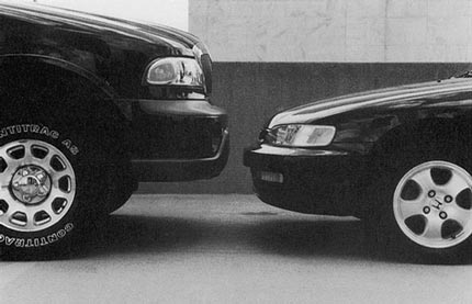 In High and Mighty: SUVs—The World’s Most Dangerous Vehicles and How They Got that Way (PublicAffairs, $28), Keith Bradsher exhaustively details the case against motorbloat. Much of his fodder is familiar, some not: Sport utility vehicles need not meet the same safety, fuel-mileage or emissions standards as cars. They offer no safety benefit for their occupants, and they pose a major threat to occupants of cars that run afoul of their lofty bumpers (see below). As a result, because of roughly equal insurance rates, car owners subsidize large liability claims against SUVs. And SUVs owe their existence at least in part to a cynical effort by the auto industry to duck regulation and maximize profit.