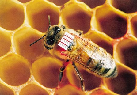 Many of the 58 selections are both aesthetically and intellectually pleasing. Above, the bee in David C. Ring’s Bar-coded Honeybee on Honeycomb (1988) has been tagged by researchers so that it can be scanned with a laser bar-code reader to track how often it departs from and returns to its hive. And Amanda Rebbechi’s Epilepsy Procedure(2000) offers a close-up look at intracranial electrodes recording brain functions and localizing the source of seizures.