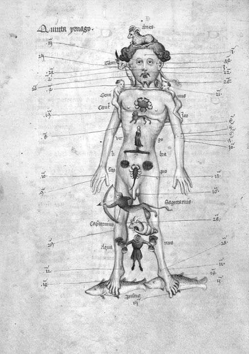 Medieval bloodletting diagram, Liber Cosmographiae, John De Foxton, 1408